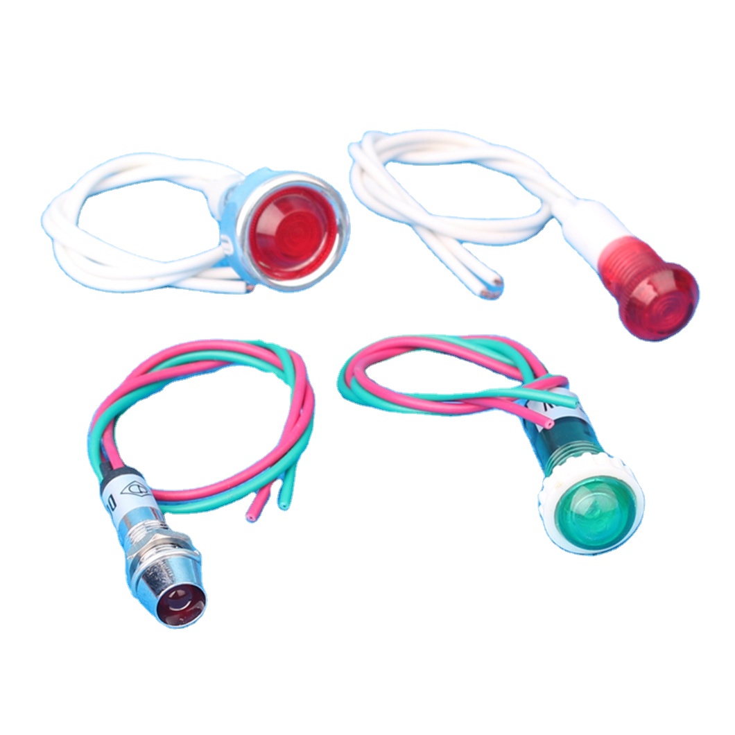 Indicator light is also called “Indicator lamp”,” Signal Lamp”,” Signal light” or “Pilot light”, they are widely used on many machines and devices, to show the operating condition or whether power is on. They have a range of colors and voltages. We supply a wide range of LED Indicator lights. In our catalogue, They are classified into metal indicator lights, plastic indicator lights and LED holder(LED Bezel). Metal indicator lights are all IP67 waterproof rated, sizes range from 6mm LED indicators up to 40mm. All of LED colors are available, including Bi-color and RGB options. Plastic LED Indicators are very cost-effective, and they have a variety of styles to choose from. They are not only round shape, but also rectangle and square shapes. Our LED Bezel is very popular because it’s small and with a very short body, So can be stalled Our LED holders are also very popular because they are very small and have a very short body, so they are very suitable for installation on equipment with a small space. We have various sizes of LED holders corresponding to different sizes of LEDs. The LED holder can be made of plastic black, plastic chrome, Brass chrome plated, and Aluminum anodized black.